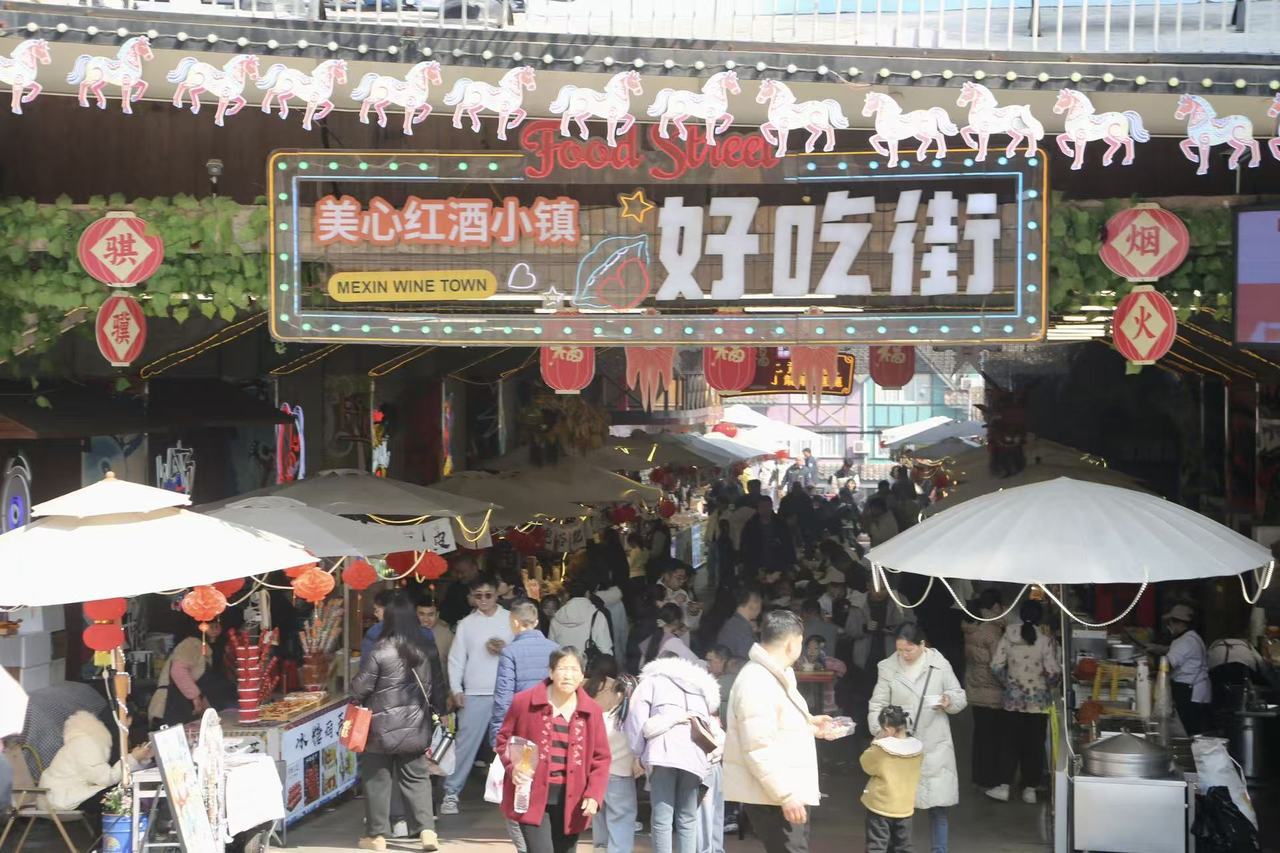 当作重庆近郊乡村游与农商文旅交融的标杆景区,好意思心红酒小镇同步推出“乐购小镇”新春举止,依托办事帮扶车间打造年货集市,累积原土红酒、暖锅底料、手工挂面等农特居品,既餍足搭客一站式采办需求,也带动左近村民办事增收,让乡村旅游更具民生温度。景区多措并举作念好客流教悔、安全保险、服务提质等责任,全力保险假期游览顺次与体验感。