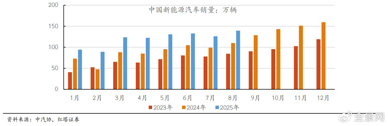 新能源汽车当作政策和产业的共振持手,本年陆续保持致密的增长,凭据Wind关所有据,本年上半年累计销量693.41万辆,同比增长40.30%。由于昨年同期的高基数,7、8月份增速有所回落,但仍保持在25%以上。