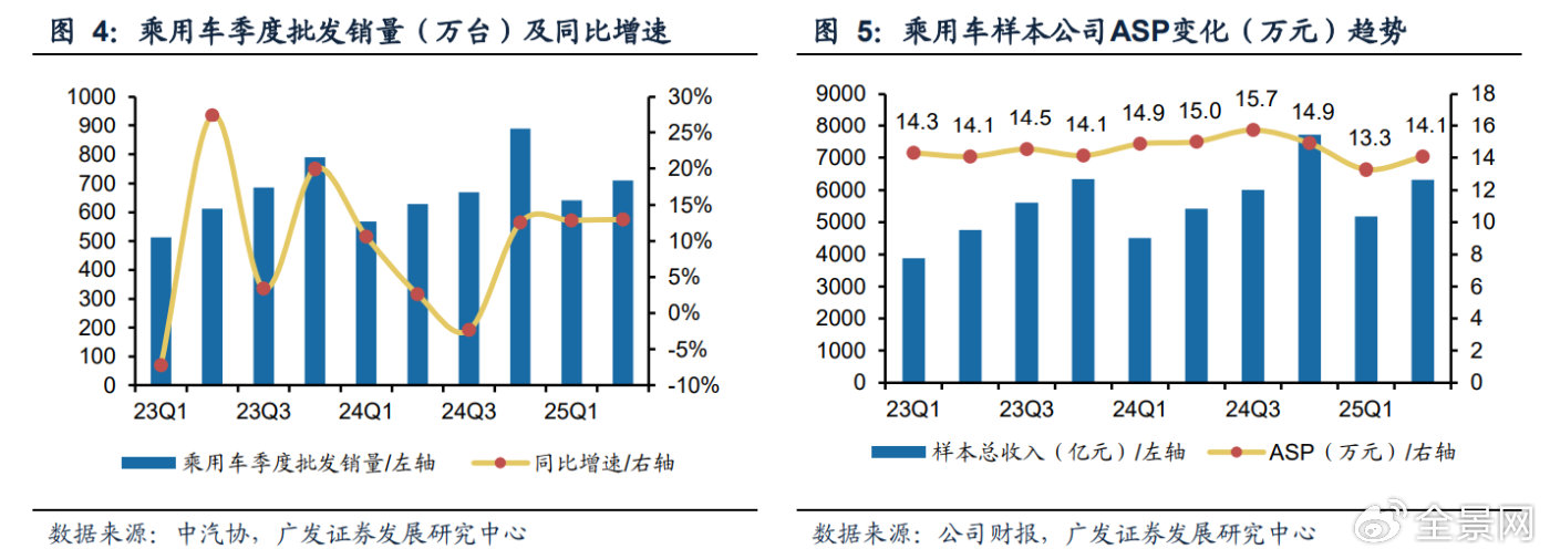 凭据广发证券统计的汽车上市公司样本数据,2025年二季度汽车行业结束买卖总收入10081.9亿元,同比+8.8%;结束扣非前/后归母净利润389.0/325.8亿元,同比别离-8.8%/-0.8%,各细分范畴均结束收入同比正增长。