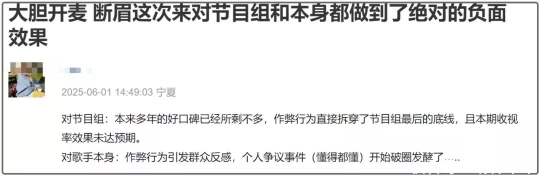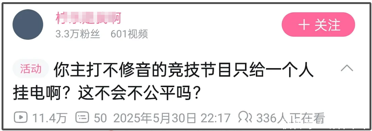 不得不说粉丝的脑回路如实很仙葩,如果这是一档莫得任何竞技性质的综艺,修音就修音了,但问题是这一期比赛,只须断眉一个东谈主被听出来了挂电,这从本色上就对其他歌手不自制。