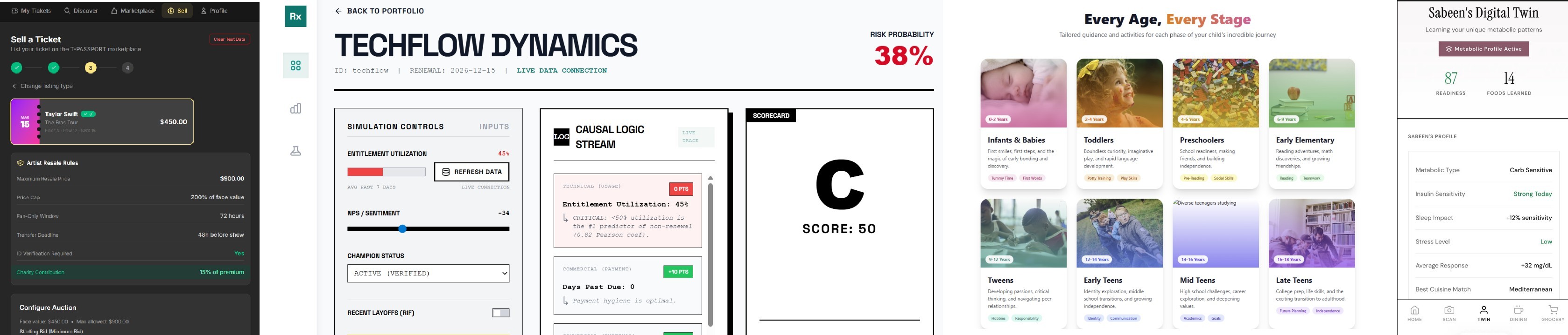 演示案例包括:由 Dee Sethmajhi、Jane Lian Wang 和 Yue Ma 开发的 Ticket Passport(一个考据票务销售市集);由 Whit Chiles、Jose Olivares 和 Spencer Louie 开发的 Revenue Resilience(识别小企业的收入风险并创建智能体管制决策);由 Manoj Massand、Samuel Lee 和 Harry Lu 开发的育儿伴侣(将孩子的意思与举止匹配);以及由 Angela Argentati、Sabeen Chawla 和 Adeel Rizwan 开发的 Invive(血糖展望)。(还有许多其他优秀的样貌,但这几个团队授权我不错共享截图!)